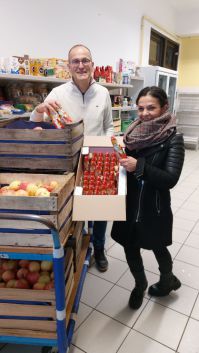 So übergab Klaus Braitmaier im Namen des Vereins 100 kg Äpfeln und 250 Schoko- Nikoläuse an A. Tasdelen vom Tafelladen in Herrenberg. Jedes Kind, das in den Tafelladen kommt, darf einen Schokonikolaus und einen Apfel mit nach Hause nehmen, als kleiner Gruß vom Nikolaus.