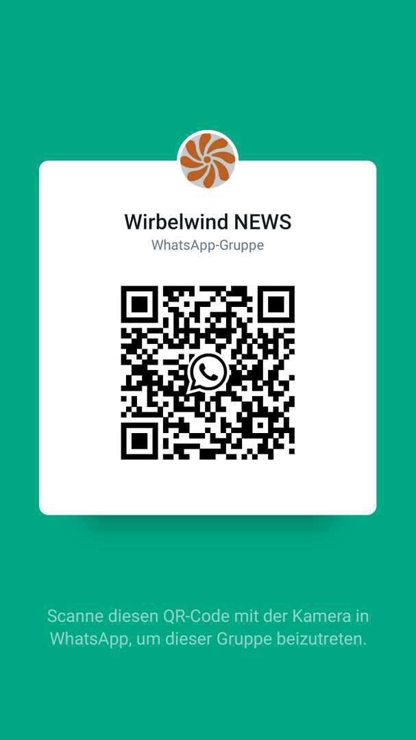Wer dieses Mal nicht dabei sein konnte, aber weitere Events nicht verpassen möchte, kann gerne mit untenstehendem Barcode unserer WhatsApp-Gruppe „Wirbelwind NEWS“ beitreten. Hier werden wir über alle geplanten Aktionen und wichtige Themen informieren.