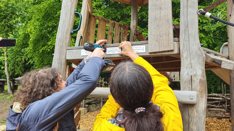 Aguilera-Fichter (2. Vorsitzende) und Doris Tilemann (Kassierein) in einem kleinen Festakt eigenhändisch am Spielgerät angebracht.
